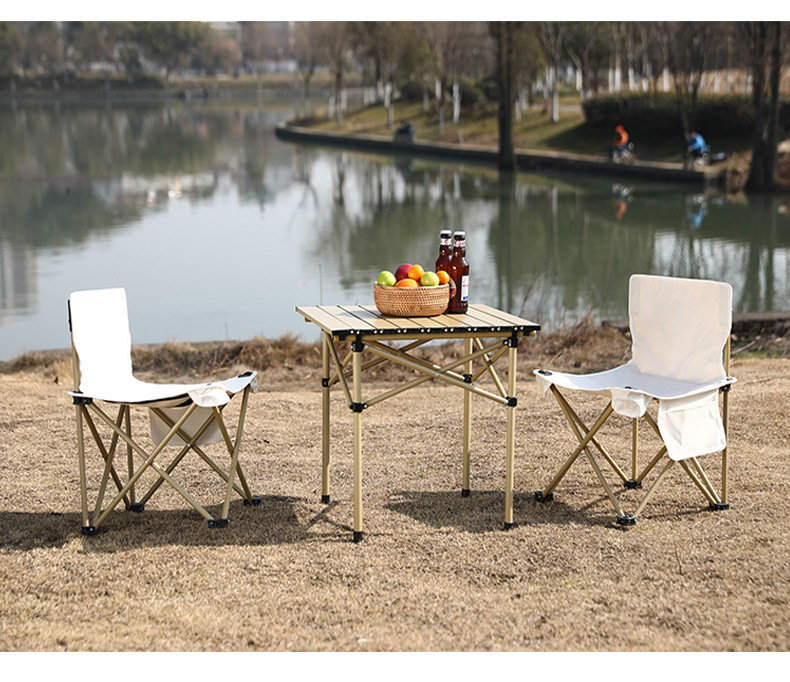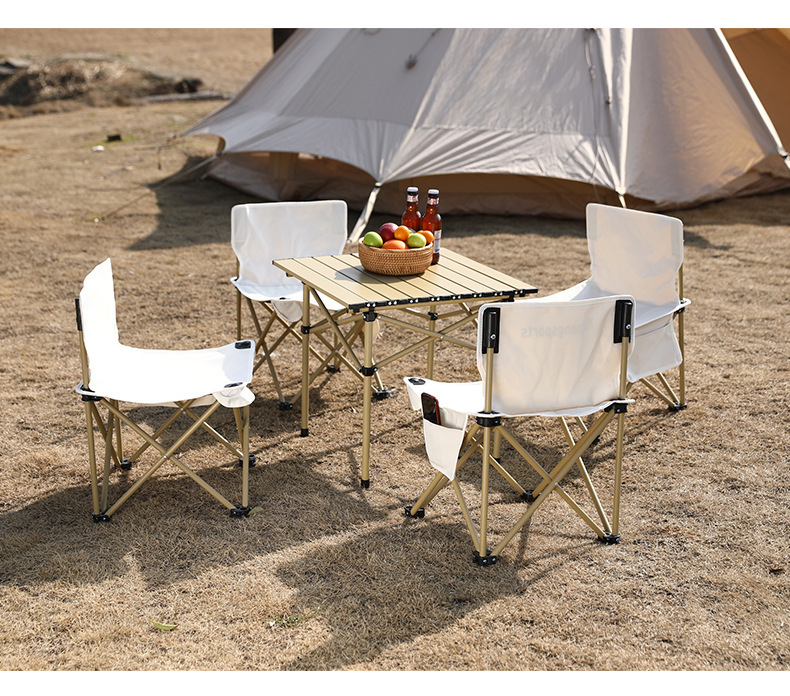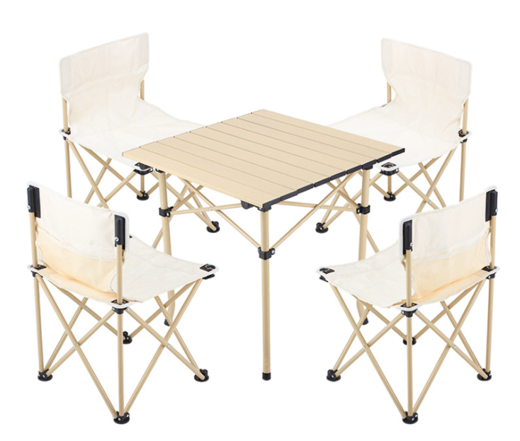 Outdoor large folding table and chair 5-piece set portable portable camping camping aluminum leisure chair