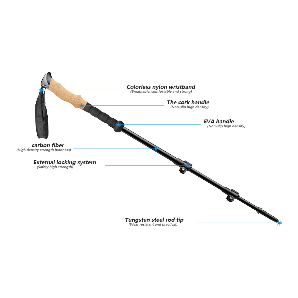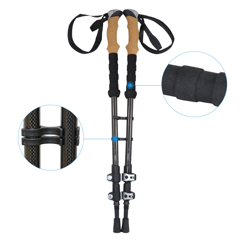 Outdoor Ultra Light Carbon Fiber Telescopic Alpenstock Two in a Pair Trekking Poles